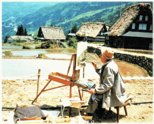 | ▲ 五箇村にて 撮影年不祥 ▼ 向井潤吉アトリエ館 |