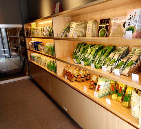 お茶製品は「自家焙煎ほうじ茶」をはじめ茶師十段が選び抜いたお茶が並ぶ。