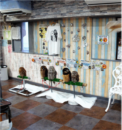 2012年頃から癒しが得られると人気を集めて流行りはじめ都心を中心に相次いでオープン。フクロウを店内で飼育していて、フクロウを間近に眺めたり触れたりできるのが特徴です。