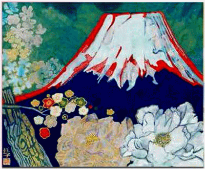 本展では、花や雲や湖を合わせて描いた富士山の絵画を特集。